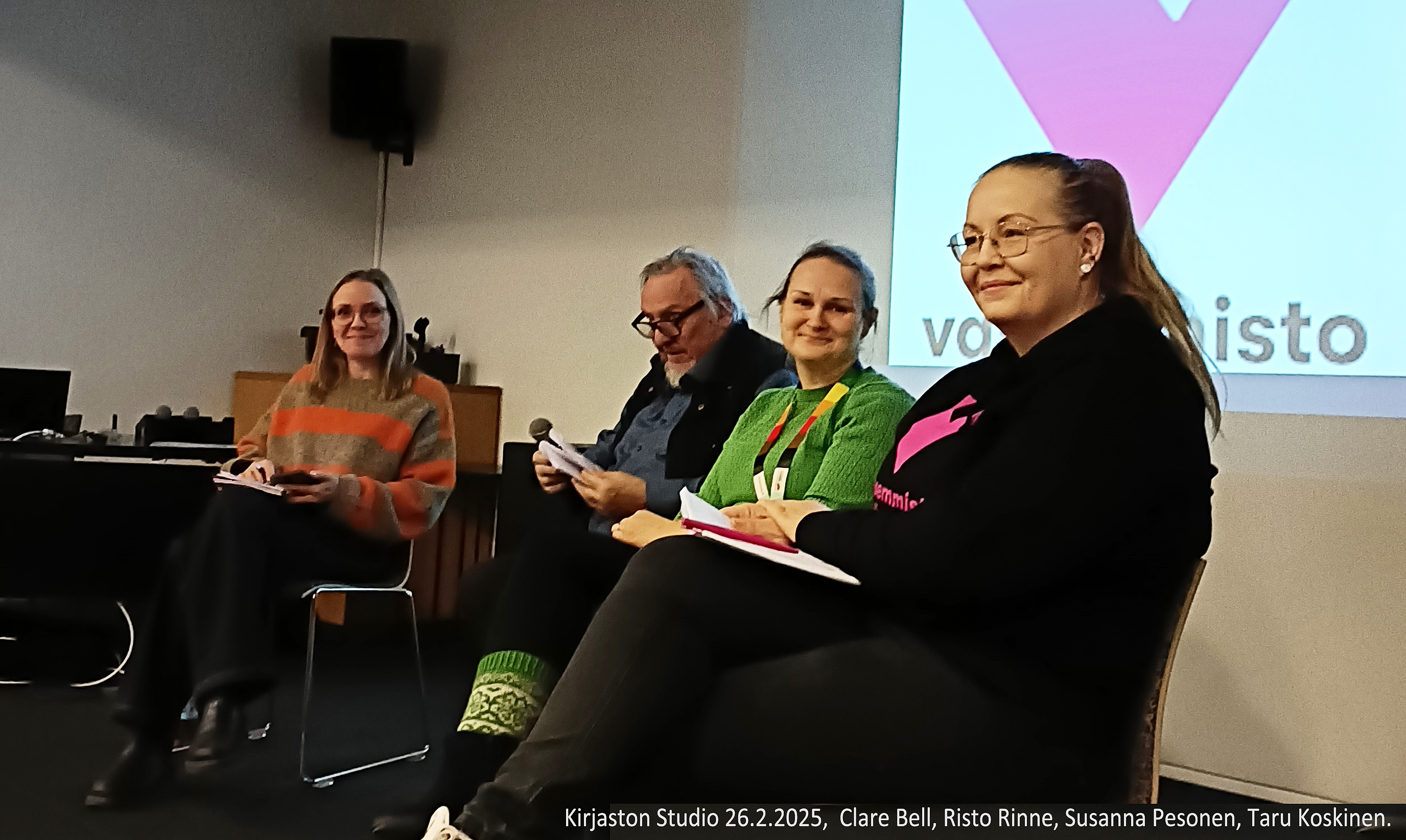 Olipa hyvä keskustelu kirjastolla siitä, mikä mättää koulutuksessa. Tunnelmaa vahvisti vielä aamun lehti, jonka mukaan Turku käyttää perusopetukseen vähemmän rahaa kuin muut kaupungit. Kirjaston Studiossa järjestettyyn keskusteluun osallistuivat sairaanhoitaja Clare Bell, emeritusprofessori Risto Rinne, luokanopettaja Susanna Pesonen ja nuoriso-ohjaaja Taru Koskinen. Keskustelun järjestivät Vasemmistoliiton turkulaiset yhdistykset TERVAS ja KOVA. Niin innokkaasti kuuntelin ammattilaisten kokemuksia, että muistiinpanojen tekeminen unohtui. Nyt yritän koota ajatuksiani.27.02.2025