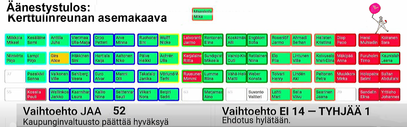 Hämeenkatu 4-10 eli Kerttulinreunan kaava hyväksyttiin äänin 52-14. Vasemmiston edustajat vastustivat kaavaa jo kaupunginhallituksessa ja valtuustossa kaavaa vastusti myös keskustan valtuutettuja. Kaavan perusteluissa todettiin, että tavoitteena oli tutkia täydennysrakentamisen mahdollisuuksia ydinkeskustassa. Kaava herätti runsaasti vastustusta. Erityisesti Vähä-Hämeenkadun asukkaat pitivät esitettyä rakentamista liian korkeana ja liian suurena. Muistutusten vuoksi kaavaan oli tehty vain pieniä muutoksia: Kerttulinkadun katualueen päälle tulevaa uloketta pienennettiin, jolloin saadaan osoitettua paikat kolmelle katupuulle. Vasemmiston hylkäysesityksen perusteena oli se, että kaavassa on raskasta muurimaista rakentamista, joka ei edusta hyvää kaupunkikehitystä.